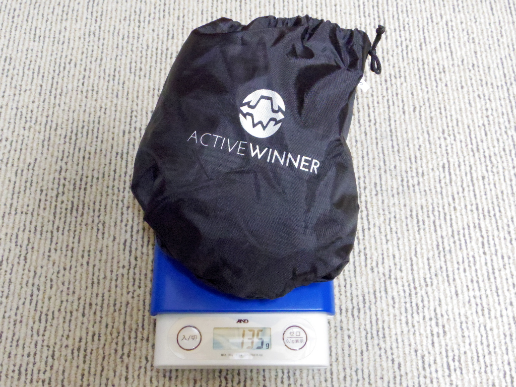 本体は、ポリエステル100%。軽量です(収納袋込み実測135g)。