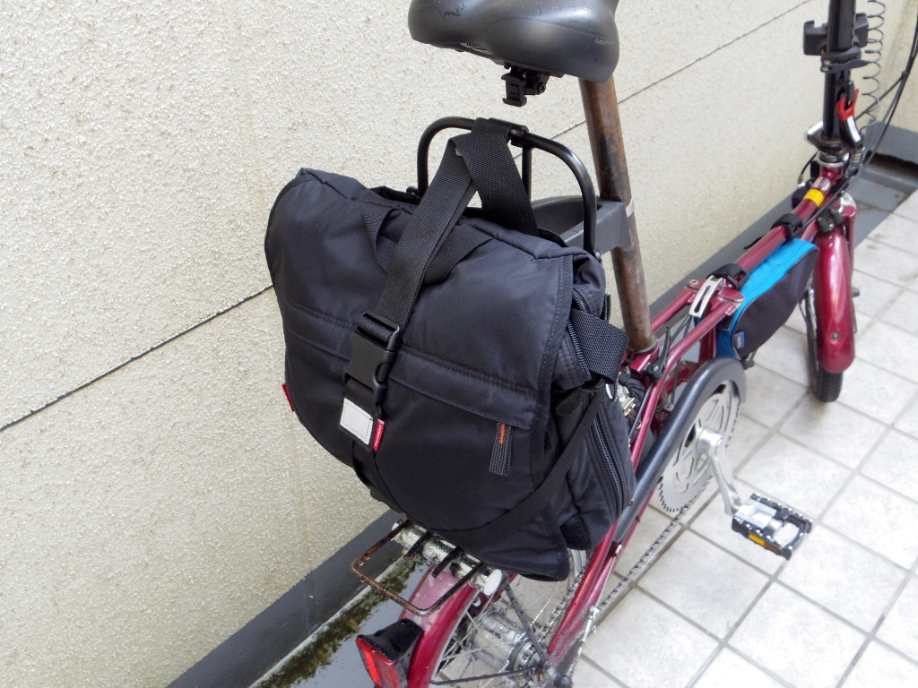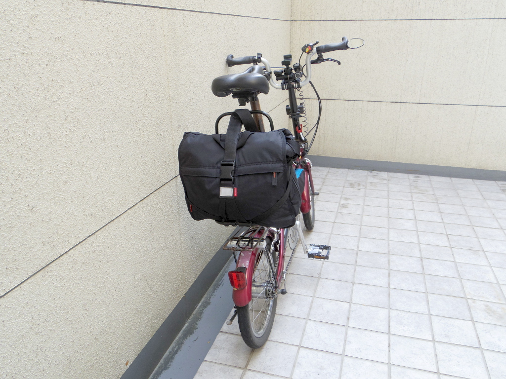小径自転車に買い物用バッグの取り付け