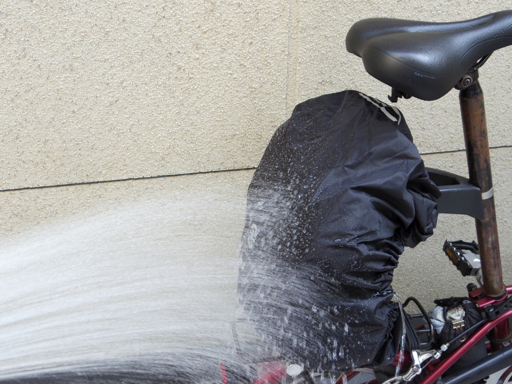 私は登山はしないので、登山用リュックは持っていません。しかし、土砂降りの雨でも、自転車に乗ったりする機会はあり、その雨天でのバッグの防水には手を焼いていました。そこで、登山用リュックの防水カバーを自転車の積載荷物の防水に流用することを思い立ちました。