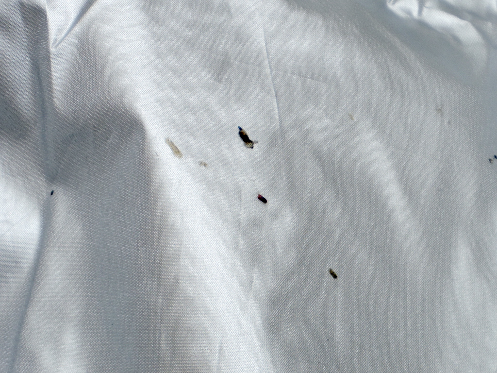 防汚性については、図らずも実証することができました。カバーを広げて地面に広げた際、自転車のチェーンのオイルが落ちていて、このカバーに付いてしまいました。