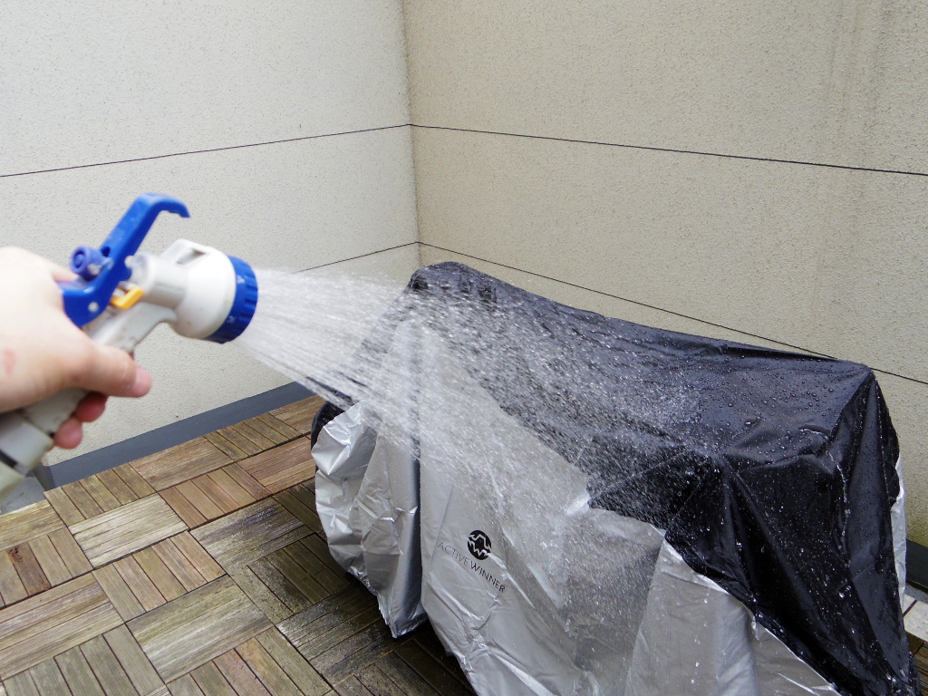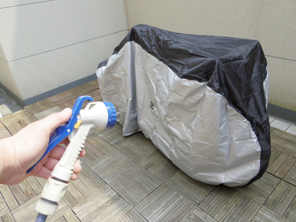 結果は、当然ながらクリア。中の自転車には水滴一つ付いていませんでした(下部の床からの跳ね返りは除く)。