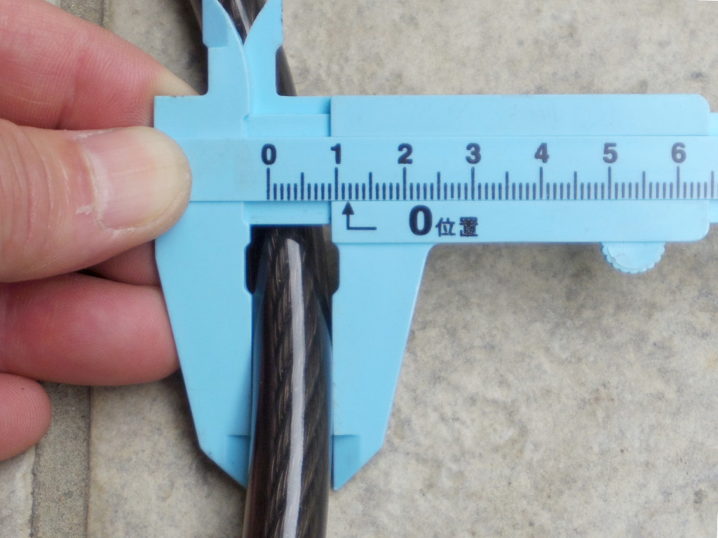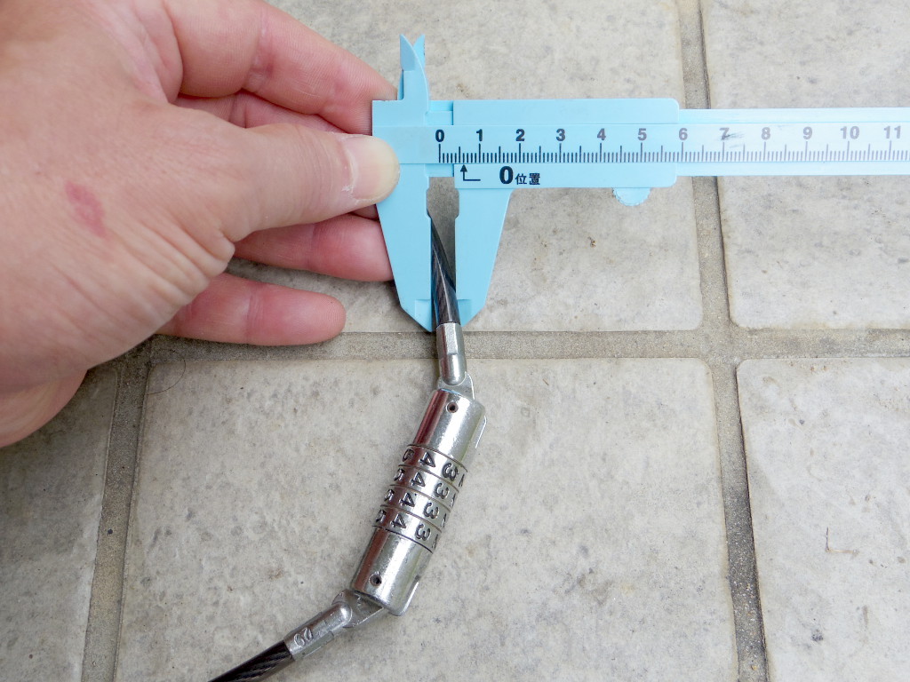 ワイヤーの長さは70cm あります。また太さは約12mm。これならばペンチやニッパーでは当然簡単には切れません。人目のある場所に止める前提であれば、数時間の駐輪も安心なレベルです。