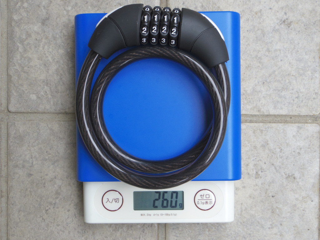 実測重量 260g。前述ロックAよりも重くはなりましたが、不安で使えないものよりは、多少の重量があってもしっかりしたものを選びたいです。また、この商品、Amazonのページでは本体重量300gと出ています。個体差にしては大きいので、もしかすると Amazonのページ
