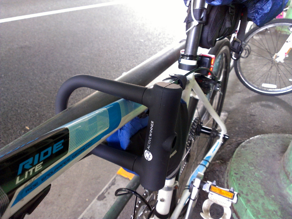 今回利用することになった「Active Winner 自転車ロック U字」は、その自転車フレームへの当たりを考慮した、シリコンゴムで全面的にカバーされた、U字ロックのプレミアム・バージョンです。