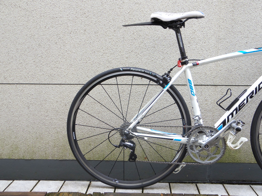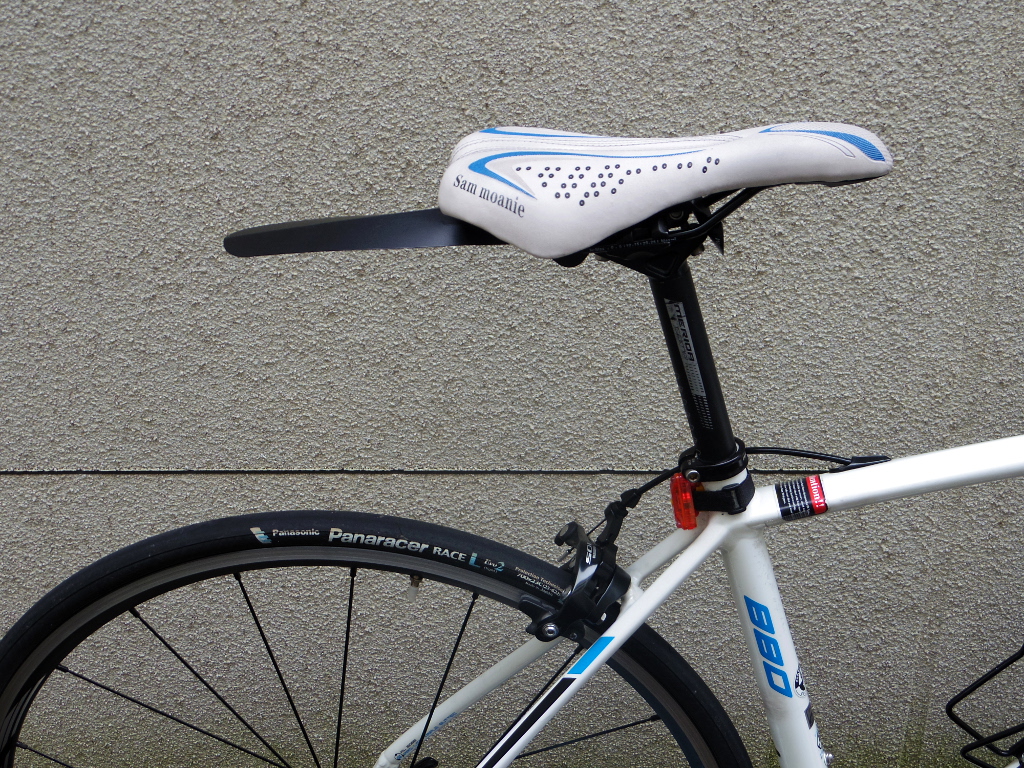 できれば、雨天(もしくは水たまりを通る可能性があるとき)にはロードバイクは乗らないで済むのが望ましいのですが、それでも突然の雨に降られたような場合は、せめて後輪だけでもドロヨケがあると便利です。