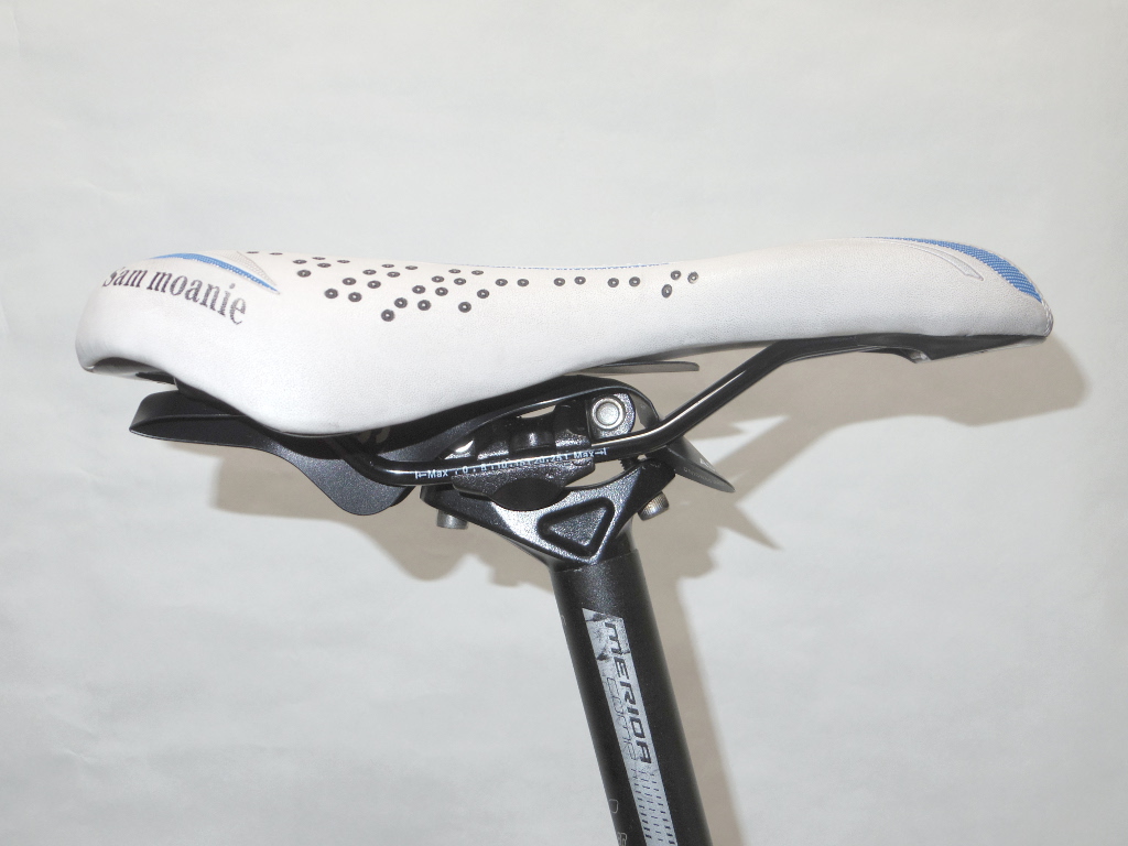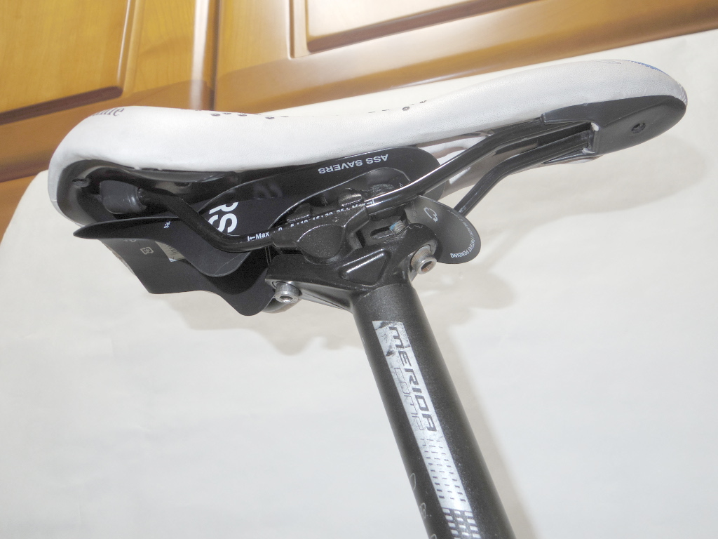 上記のタイプは、サドルレールの後ろ側に挟んで固定するように作られたもので、サドルレールの後部の広がり具合によっては装着できない場合があるため、購入は避けた方が良いと思われます。買う場合は新型を買いましょう。