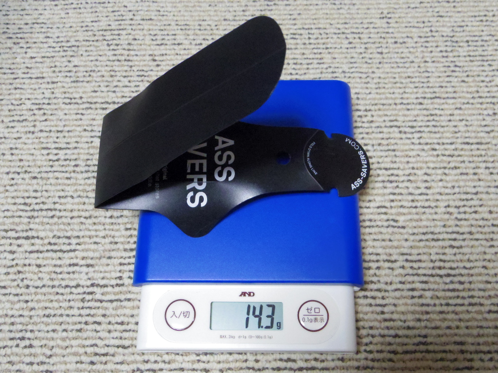 ただし、フラップの長さが短く、車輪の頂上位までしか達していないため、この Ass Saver Original では、後輪後部から斜め上方に飛んできて、背中に当たる水しぶきを防ぎきれません。