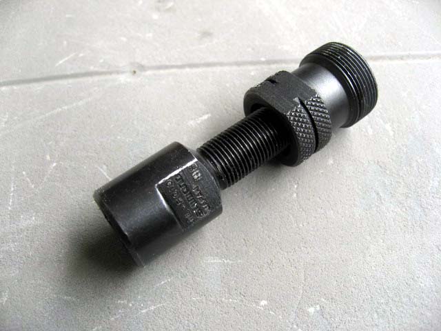 クランクはボルトによって相当な力でねじ込まれているため、専用工具がないと取り外すことができません。このシマノの専用工具を使います。