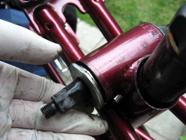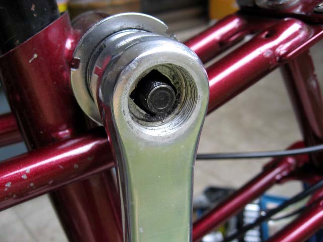 反対側は、このようにクランクの軸穴部分に外側からねじ込むネジ山が付いています。
