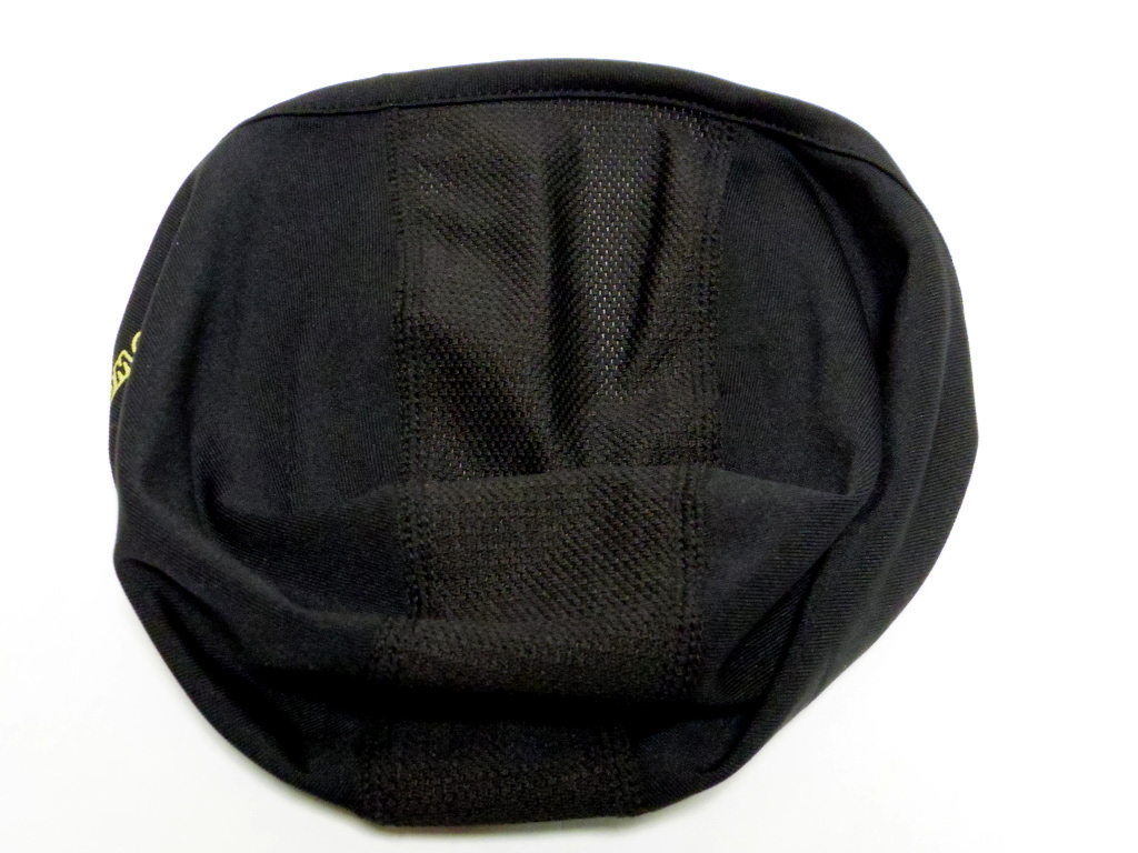 素材はナイロンとポリウレタン。綿のような吸湿素材ではないため、常にサラサラ、なおかつ中央部分はメッシュとなっているので通気性が良好で、気温が高い場合は、明らかにこのインナーキャップを被った方が快適度が増します。