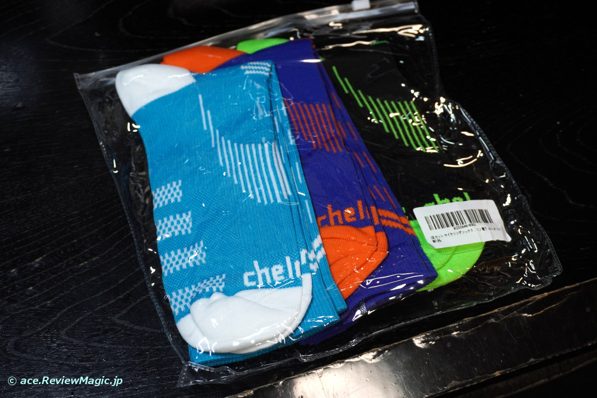 そこで、例によって Amazon を物色していると、「これなら!」というサイクリング向けソックスを見つけ、早速購入しました。3足、1,499円です。
