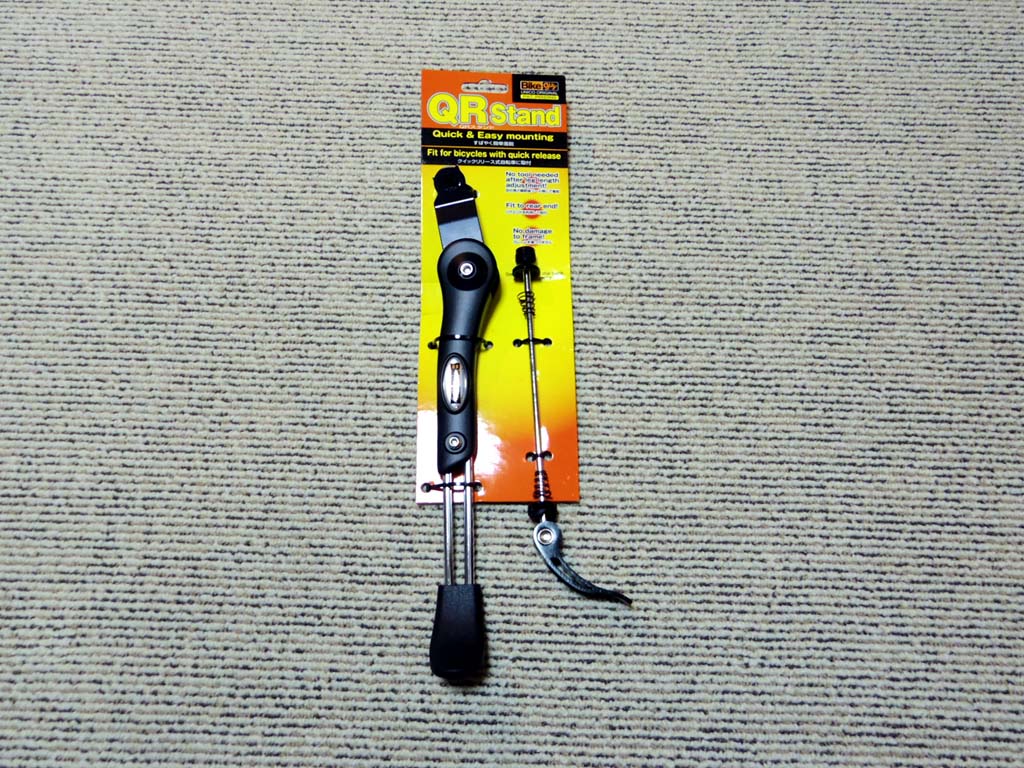 しかし、私の場合、ロードバイクを通勤や買い物に使うことが多々あり、一般的な駐輪場を使うことも多いため、自立するスタンドが是非とも必要でした。そのニーズを満たすために買ったのが、この Bikeguy QR Stand です。