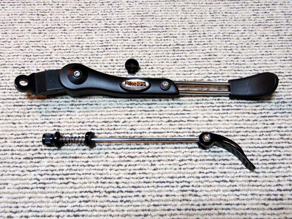 製品重量は、シャフトを除くと 280g(つまり重量増280g)。多少の重量増はありますが、利便性は抜群です。また、不要な場合は手軽に取り外すことができるので、ロードバイクにはうってつけのスタンドだと思います。