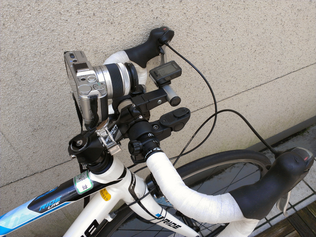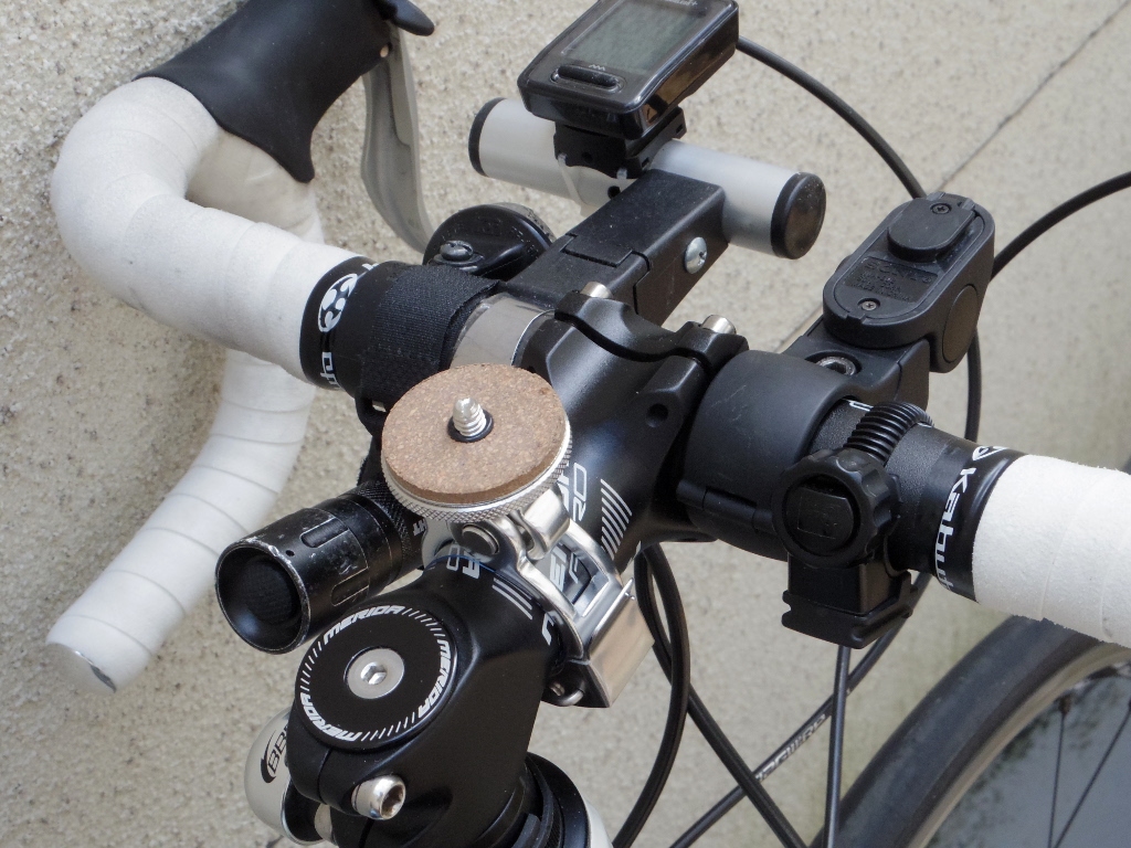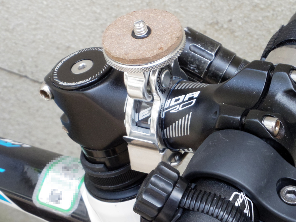 この位置にサイコンがあれば、ステムやトップキャップにカメラをマウントすれば、走行中に前方の景色を撮影しつつ、速度を撮影できるかもしれないと思い、ハンドル回りが煩雑になるのを覚悟の上で行いました。