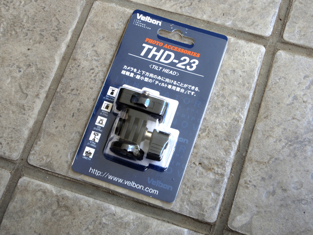 この THD-23 の特長は「自由雲台」ではなく、一軸方向だけに調整幅を持たせた「チルトヘッド」であることです。そのため一般的な小型自由雲台よりも安価で、小型軽量となっています。