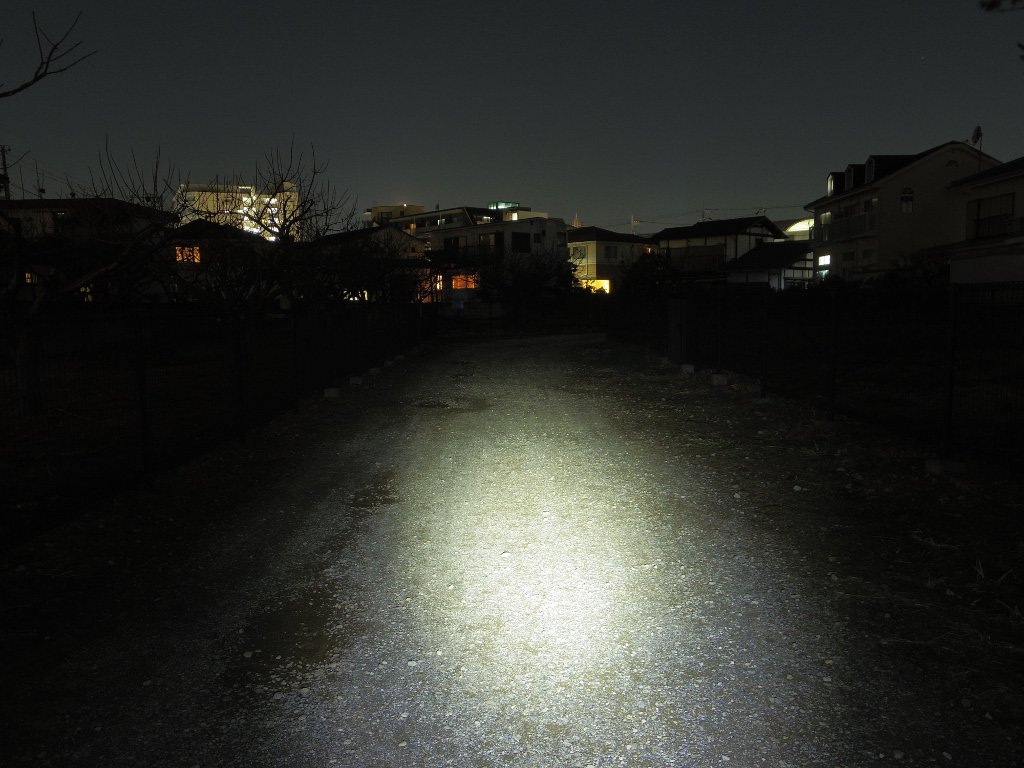 VOLT300 とて相当明るいのですが、その明るさは比較的中央部に絞られます。その点、VOLT800 は明るい範囲が広がり、道路の視認性が飛躍的に向上しているのがわかると思います。