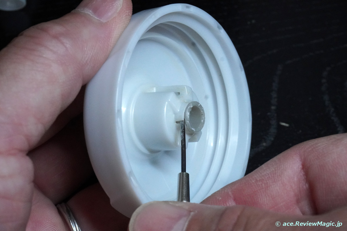 過去6年間、それほど気にせずに使っていましたが、今回、その飲み口の部分を分解清掃することにしました。ユーザー・レベルで分解清掃が可能だったので、その手順をご紹介することにします。