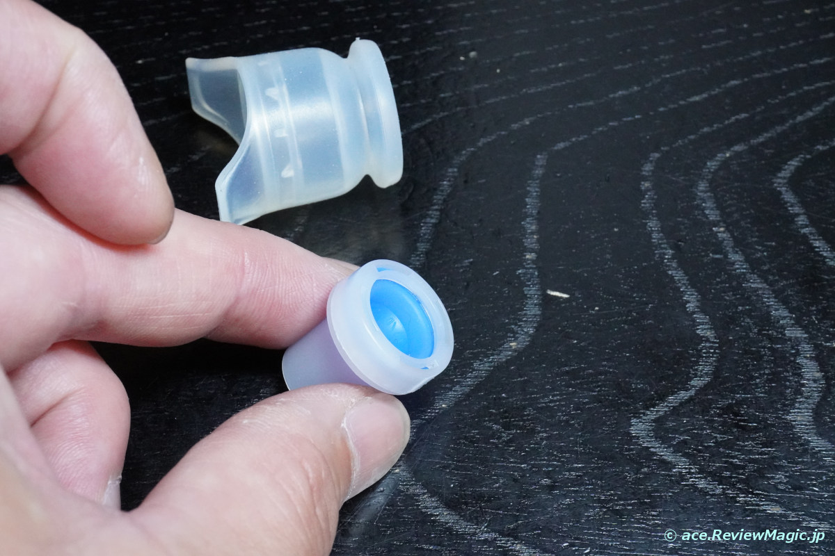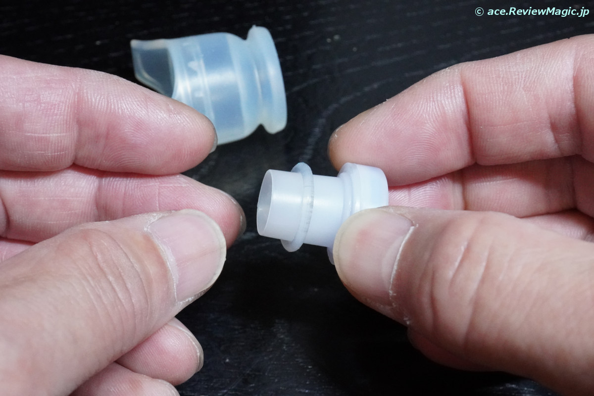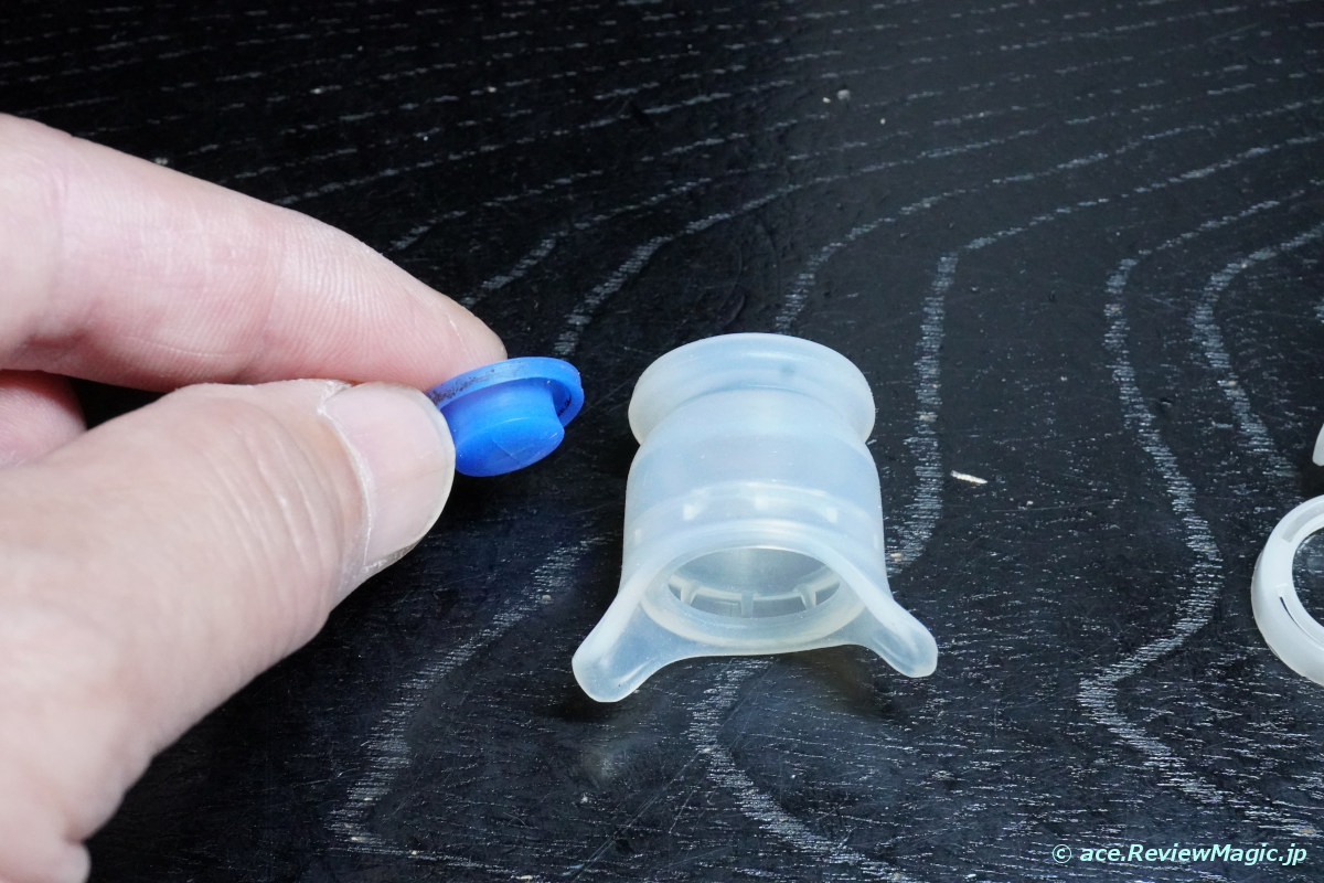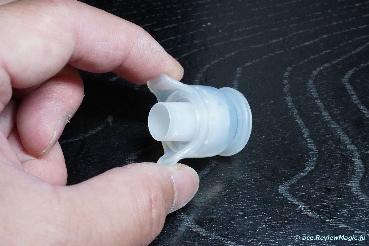 次に、シリコンゴム製の飲み口の中に内蔵されている樹脂部品を引き抜きます。