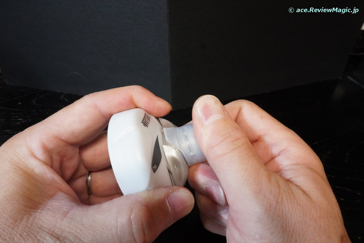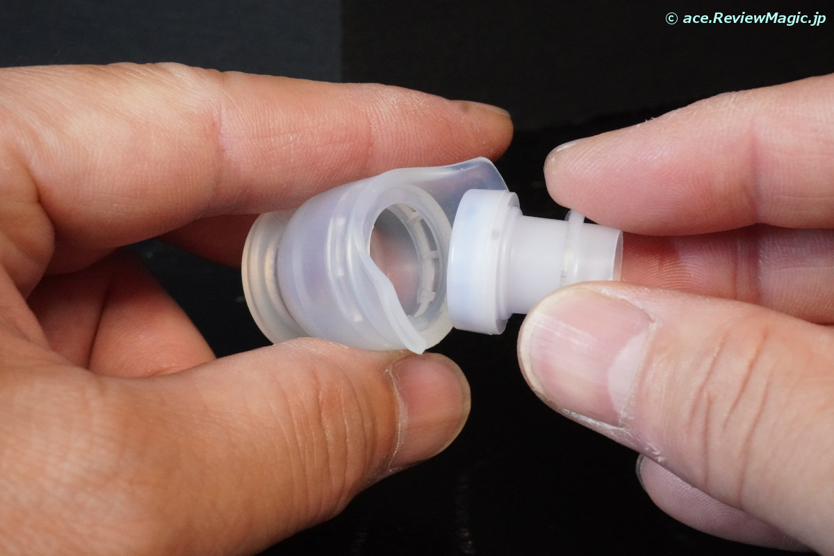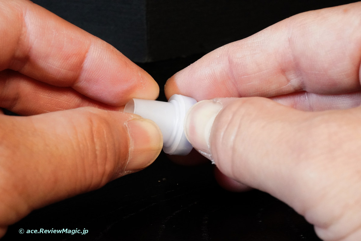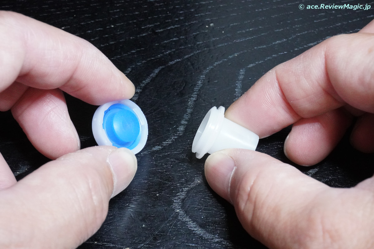 次に、シリコンゴム製の飲み口の中に内蔵されている樹脂部品を引き抜きます。