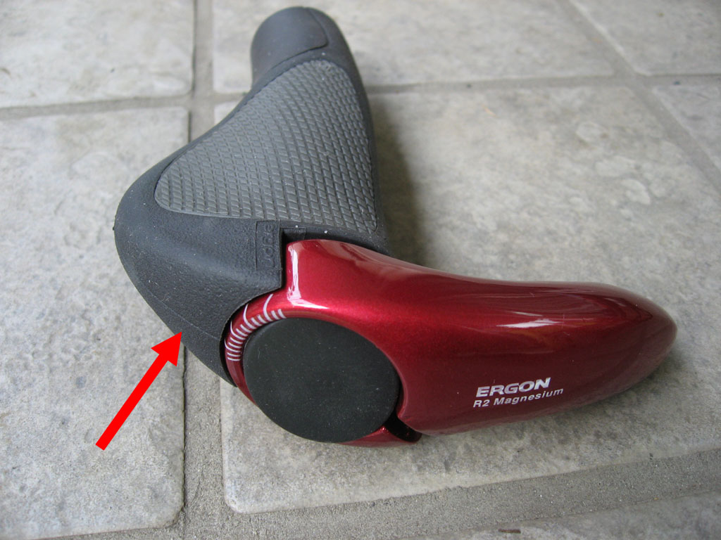 取付時には、一波乱ありました。このグリップは、「ロングタイプ」というグリップ長が長いタイプのもので、そのままだとハンドルの元の部分に完全に差し込むことができません。