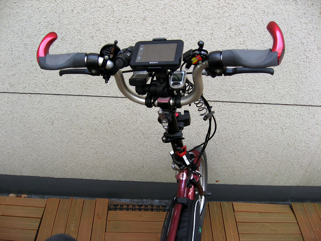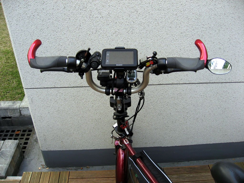バーエンドグリップの効果に気付きましたので追記します。フラットバーの場合、手のひらが下を向く上体でハンドルを握ります。それに対して、バーエンドを握る場合は握手をするときのように手のひらが横になります。肘を曲げて体を引き寄せながら走る場合、フラットバーを握っていると肘が横に張り出します。それに対して、バーエンドを握っていると、肘が下側にコンパクトに収納されることになります。また、骨格上、肘を曲げやすくなります。この点で、バーエンドを握ることの意義は大いにあると気付きました。