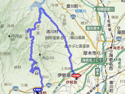 帰りは同じ道ではなく、裏ヤビツ(宮ヶ瀬湖方面)から、小田急線伊勢原駅へ抜けるルートで下りました。下りはさすがに楽でしたが、道がところどころ細く、スピードが出るために気は抜けません。景色を楽しみながら比較的ゆっくり下りました。
