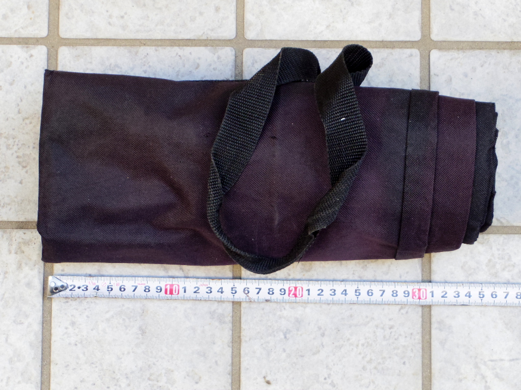 このバッグ、自転車用ではなくボストンバッグとして売られていたものなので、丈夫な材質で作られていて、畳んだとしてもこの位の大きさにしかならず、