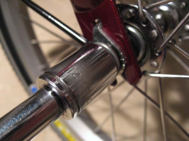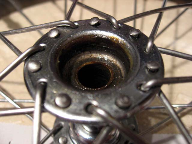 この自転車のハブは旧式なので、グリスが密封されたメンテナンス・フリータイプではなく、ベアリング部が「玉押し」で抑えられている伝統的なハブで、定期的なメンテナンスが必要です。