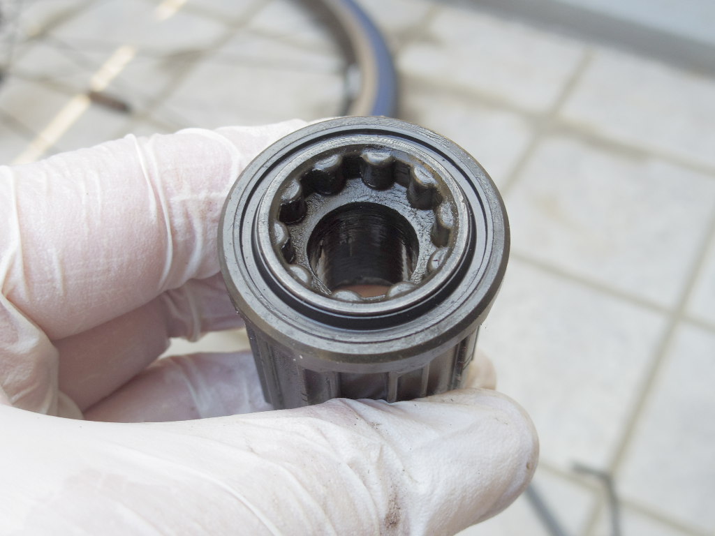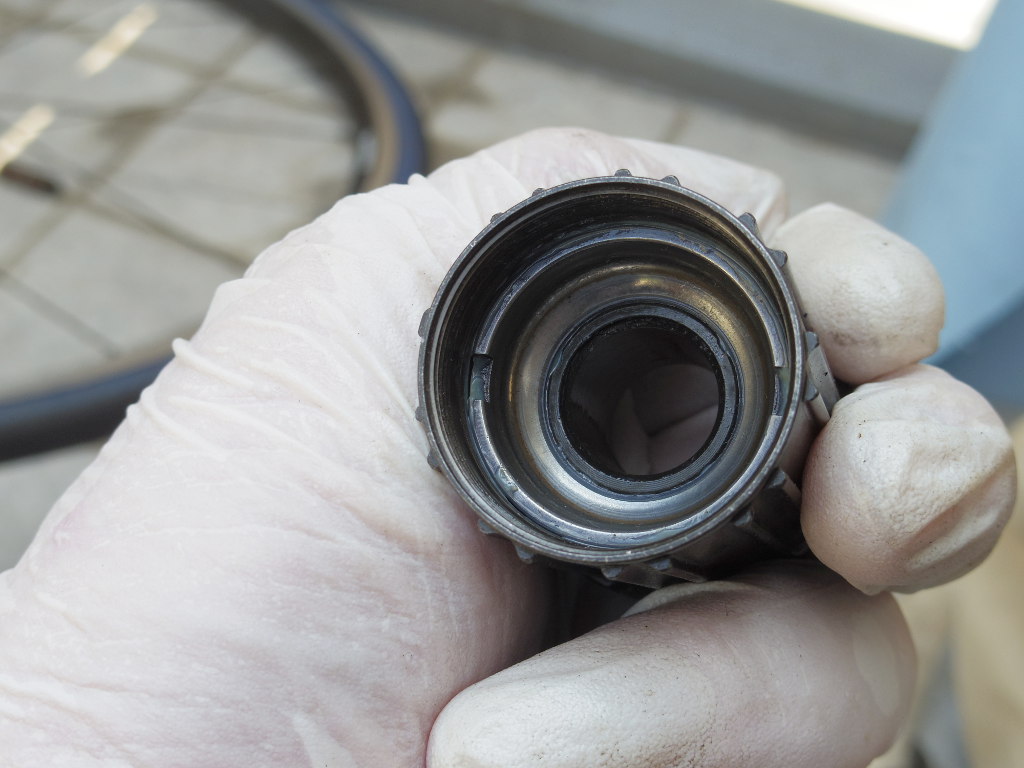 購入後ずっと使い続けていますが、どうも最近、ペダルを止めたフリー空転時に「ゴロンゴロン」というフリーが唸るような音が聞こえ始めました。どうやらフリー内のラチェットがうまく動かず、共振しているような雰囲気です。下りの坂道などで内部のラチェットが分解するのは非常に危険だと思われ、このまま使い続けるのはまずいと思いました。
