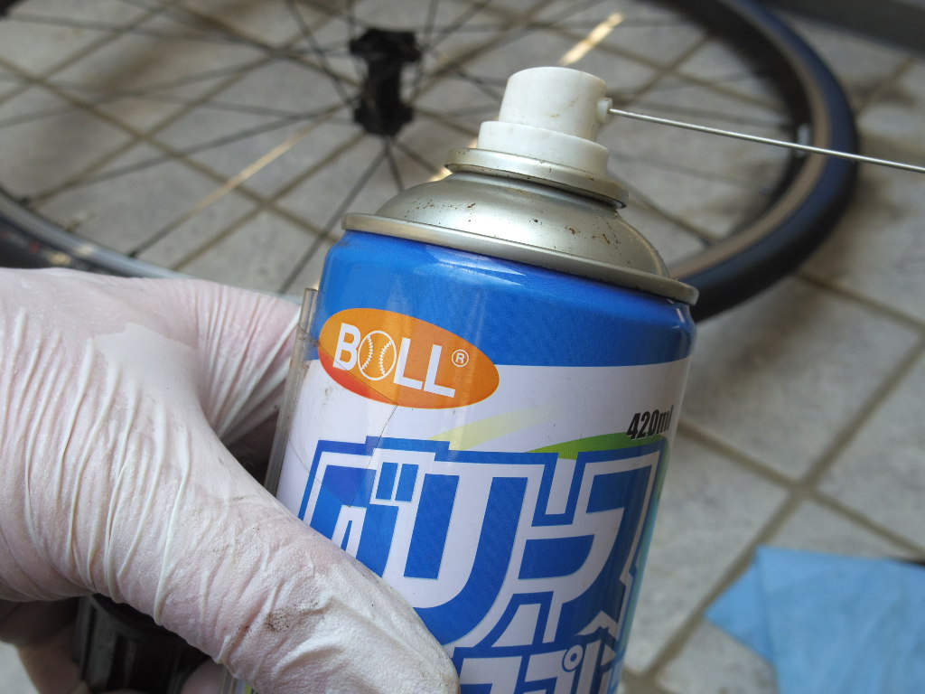 細いニードルを持つスプレーグリス缶を使って、グリスを外から注入することにしました。