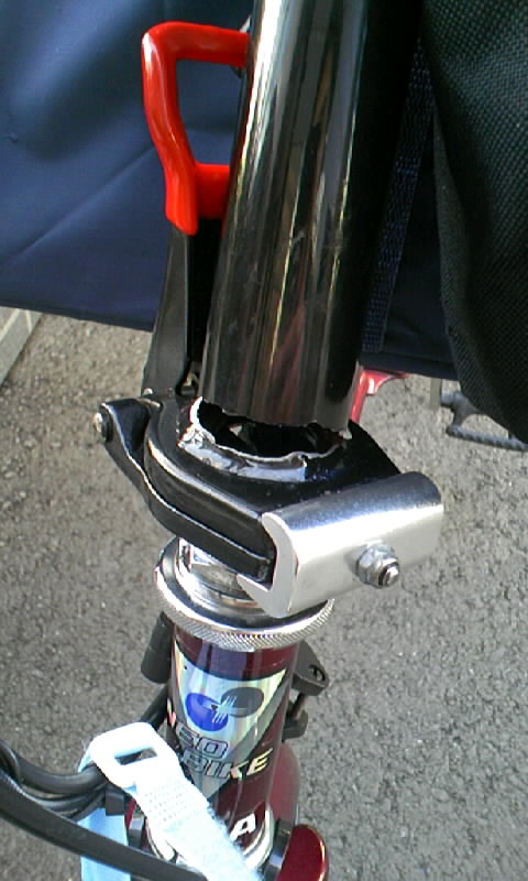ほぼ毎日往復20kmの距離を走り、通算およそ3,200km。とうとう構造上の大きな破損に遭遇しました。ともかく事故にならなくて良かったです。このような自転車はあまりガンガン使うタイプのものではないと思います。またこの自転車の初回購入日は 1999年3月31日。今から12年以上前です。その意味でこの自転車の耐久性についてとやかく言うつもりはありません。立派に働いてくれていると思います。
