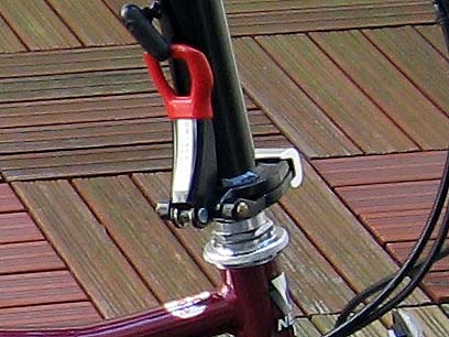 この自転車のメーカー(NeoBike社)はかつて台湾製Bromptonが流通していた頃、その生産を請け負っていた会社で、この自転車に採用されているM型アルミハンドルは、当時のBromptonのMシリーズのハンドルそのものです。その他も構造的な共通点があり、もしかするとBrompton のハンドルポストが交換用として適合するかもしれません。