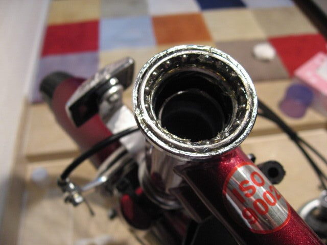 ベアリング部には定期的なグリースアップ(メンテナンス)が必要となりますが、ヘッド部のメンテナンスを頻繁に行う人は少数派だと思われます。その理由は、ヘッド部以外は全て自転車の推進力に直結するものであるのに対して、ヘッド部は少々の回転ロスがあってもちょっとハンドルが重くなる程度のことで、大きな支障にならないからです。