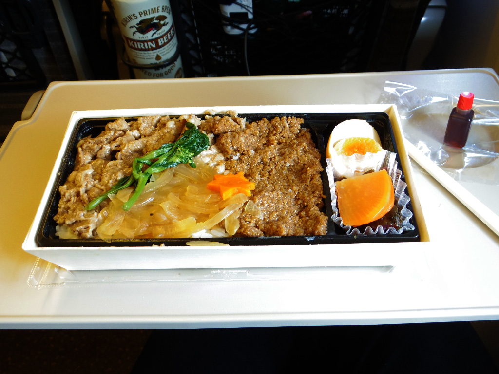 列車に乗りながら食べる駅弁は格別ですね。今回は東京駅で買った牛肉弁当です。