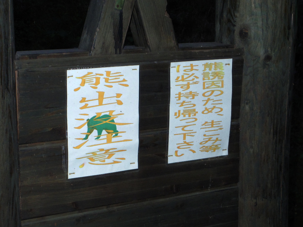 炊事場にはこんな注意書きが。熊と遭遇しませんように…。