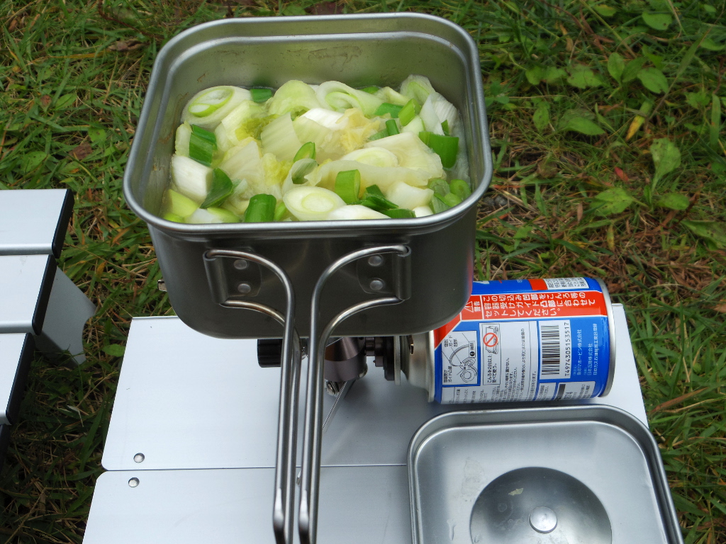 傍らでご飯も炊きます。1合ならば、山クッカー角型の小さい鍋がちょうど良いサイズです。