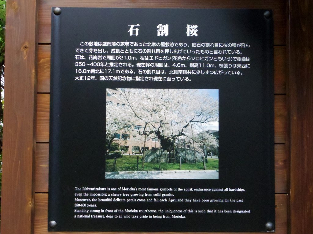 盛岡市街に到着し、ぜひ見ておきたかった「石割桜」の場所に到着。盛岡地方裁判所構内にあります。