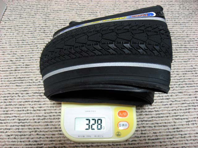 欠点もあります。それは「雨の日にとても滑りやすい」ことです。このタイヤで雨天走行する場合、金属製の側溝やマンホールのフタには決してカーブで乗りあげていけませんし、決してその上でブレーキをかけてはいけません。簡単に横滑りしてしまいます。走行抵抗が低いことの見返りに雨天の摩擦特性はかなり低くなっているようです。