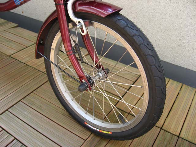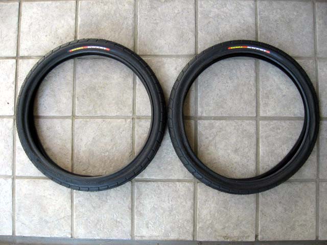 IMG_7201.jpg タイヤを走行抵抗の低いセミスリックに変えてみました。台湾製タイヤ、KENDA KWEST 16x1.50 です。