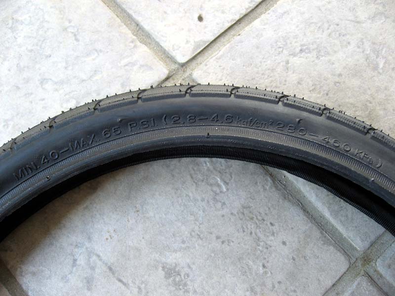 推奨空気圧は、40-65psi(2.8-4.5kgf/cm2)と書かれています。