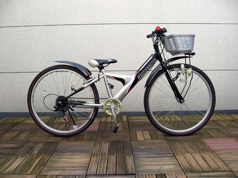 上記は、中学生の子供が小学生時代に利用していたブリジストンの「エクスプレス・ジュニア」という26インチサイズのジュニアサイクルです。この自転車の適正身長は 136-157cm と、125cm の身長の子供が使うには、ちょっと隔たりがあります。特にサドルを下げたときに、両足が地面に届くかどうかがポイントになります。