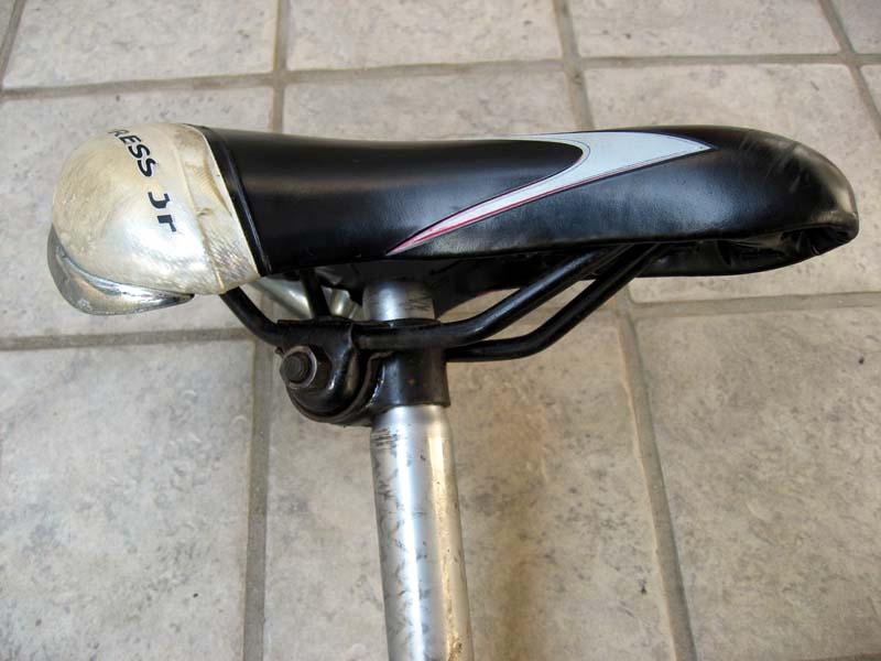 下の写真は、小さいほうの子供用自転車のサドルです。