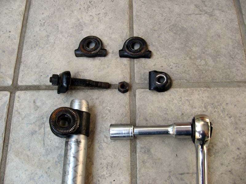 やぐらをさかさまに取り付けたため、この状態だとソケットレンチが差し込みにくく、ナットを締めるにはこのようにスパナかモンキーレンチを使うことになります。