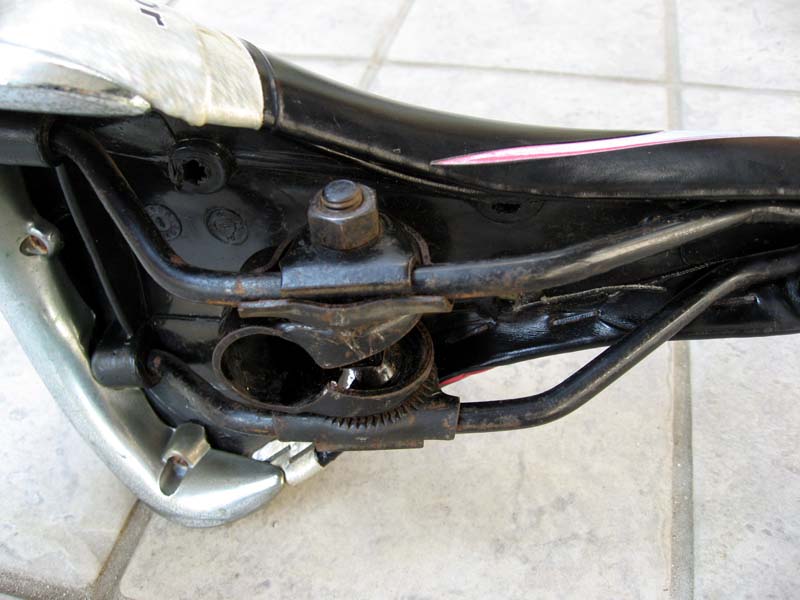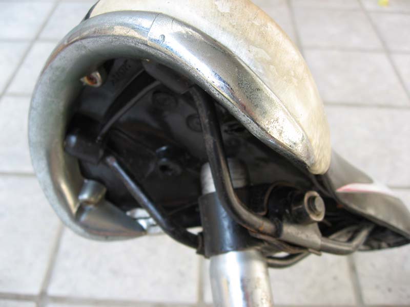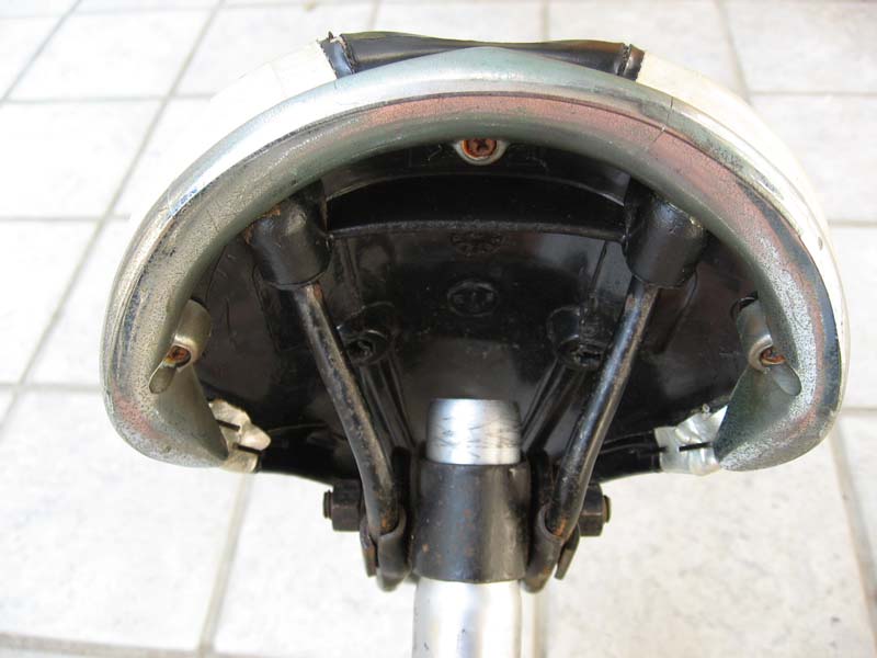 実は、このサドル、裏返しにしてみると、このように「やぐら」はなく、シートにシートポストが「直付け」されています。