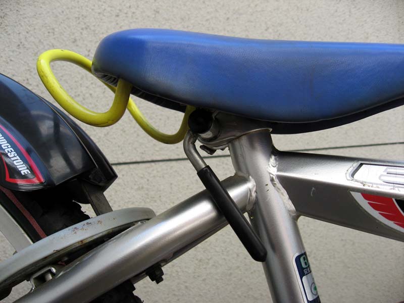 子供の自転車をちょっと大きめなものに乗り換える際、乗り換える自転車の大きさがちょっとだけ大き過ぎて、両足を付くのが困難になることがあります。ちゃんと足が着くように、何とかしてサドルの高さを下げたい場合、実際にどのような方法があるのか実践してみました。 |