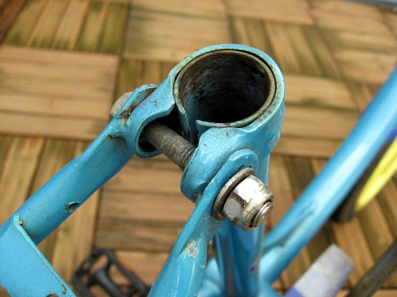 「やぐら」とはこの部分のことです。「やぐら返し」とは、これを裏返しにして装着することで、サドルの装着位置を少しでも低くしようという方法です。