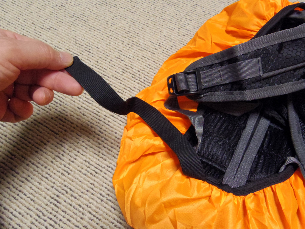 このストラップをショルダーストラップホルダーの中に差し込めば、走行時の風圧等でレインカバーがはがれてしまっても、紛失する恐れがなくなります。