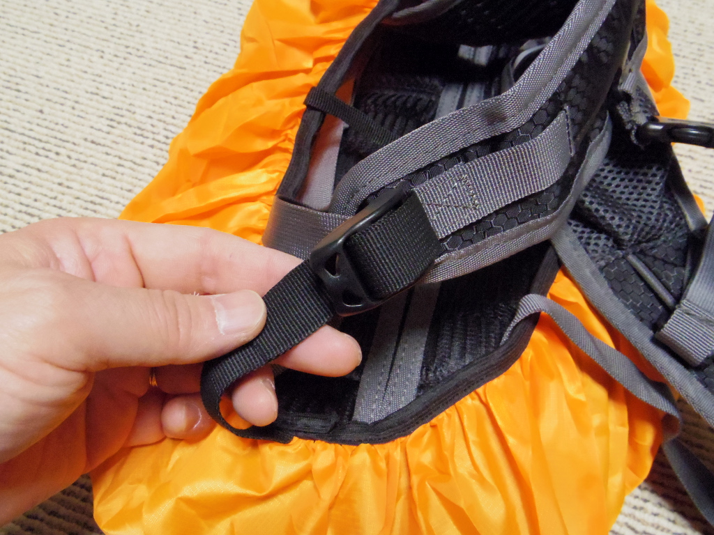 レインカバーは分離型ですが、脱落防止用のストラップがレインカバーに縫い付けられていて...。