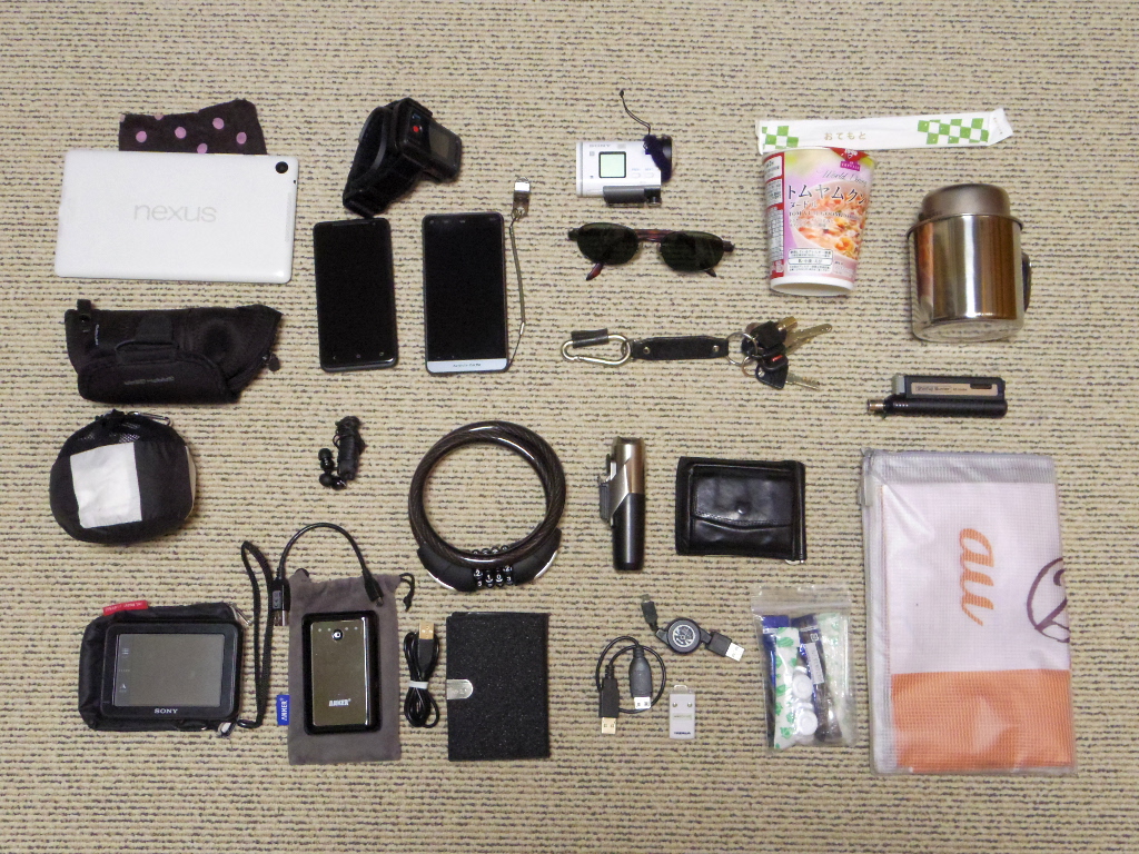 日帰りでラーツー・ピクニックをしに装備を用意しました。揃えてみると、いろいろなものがありますね。中には不要なものもあるとは思いますが、これらをすべてこのサイクリングバッグに詰め込みます。
