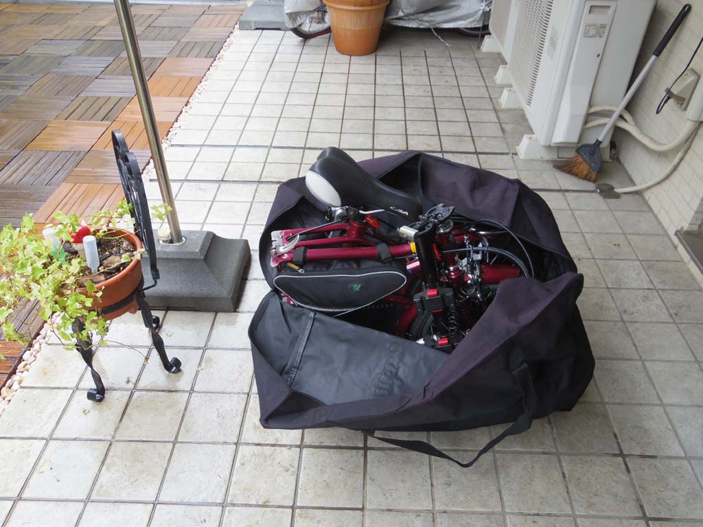 折りたたみ自転車を持ち込むためのボストンバッグ。